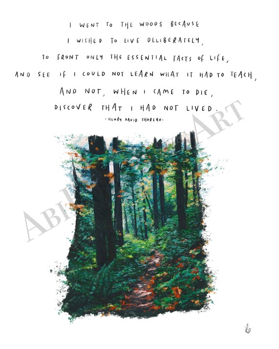 I Went To The Woods By Henry David Thoreau Art Drawing Poem Etsy